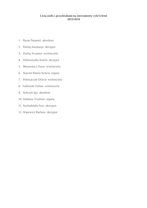 Lista osób z przydziałami na instrumenty cykl 6-letni 2023/2024.