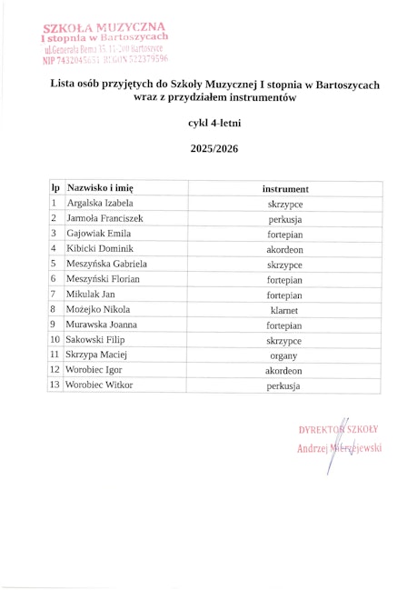Lista przyjętych 2025/2026 cykl 4-letni